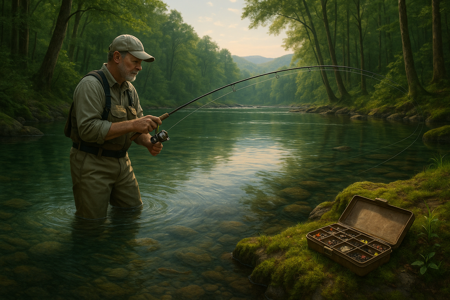 Casting in trout streams requires finesse. We recommend starting with smooth, controlled movements to reduce splash and avoid startling fish. In narrow Beavers Bend tributaries, sidearm or roll casts are invaluable for placing flies or lures under overhanging vegetation or in tight spots.